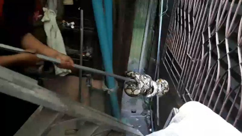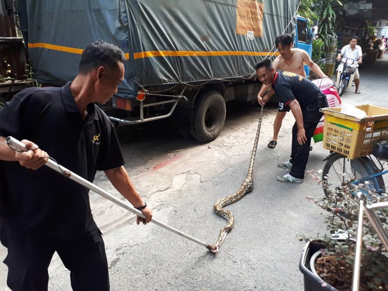 ที่บ้านหลังดังกล่าวเปิดเป็นร้านเสริมสวย พบนางชัญญา โสภาจารีย์ อายุ 56 ปี เจ้าของบ้าน ยืนรอเจ้าหน้าที่อยู่หน้าบ้านด้วยท่าทางที่ตื่นตระหนกตกใจกับสิ่งที่เจอ และแจ้งบอกกับเจ้าหน้าที่กู้ภัยว่างูเลื้อยเข้าไปขดตัวอยู่ที่ด้านหลังบ้าน ต่อมาเจ้าหน้าที่จึงได้ใช้บันใดกดตรงกลางตัวของงูไว้ และนำอุปกรณ์จับงูคล้องคอไว้และนำออกมาจากบ้าน จากการวัดช่วงตัวของงูเหลือมตัวดังกล่าวพบว่ามีความยาว 3.5 เมตร อีกทั้งที่บริเวณช่วงท้องนั้นป่องอยู่