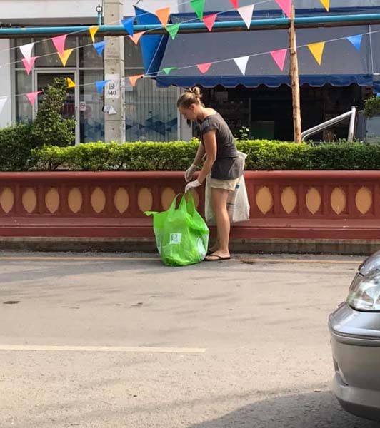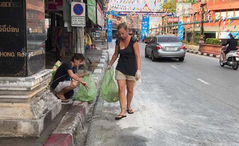 16 เม.ย.62 ผู้สื่อข่าวรายงานว่า บนโลกออนไลน์เฟซบุ๊กที่ จ.สุโขทัย กำลังมีการกล่าวถึงและชื่นชมนักท่องเที่ยวชาวต่างชาติ ชาย-หญิงคู่หนึ่ง ที่มีจิตอาสาช่วยกันเดินเก็บเศษขยะใส่ถุงพลาสติกเพื่อนำไปทิ้งในถังขยะ ตรงบริเวณริมถนนจรดวิถีถ่อง ใกล้วงเวียนหอนาฬิกา ต.ธานี อ.เมืองสุโขทัย ซึ่งเป็นสถานที่จัดงานประเพณีสงกรานต์เสื้อลายดอก ถนนข้าวตอกสุโขทัย
