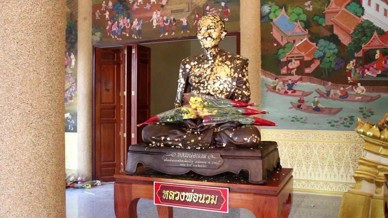 สำหรับหลวงพ่อนวม อดีตเจ้าอาวาสวัดแจ้งเจริญ ได้ออกเดินธุดงค์ไปในเขตพื้นที่ป่าเขาจนไปถึงถิ่นที่อยู่ของชาวกระเหรี่ยงโพล่ง ที่นับถือผีมีความชำนาญเรื่องไสยศาสตร์ หลวงพ่อนวมถูกชาวกระเหรี่ยงรองของหลายครั้งแต่ไม่มีสิ่งใดมาทำร้ายได้ทำให้หลวงพ่อเป็นผู้เก่งกร้าของชาวกระเหรี่ยง