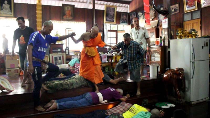ชาวไทยเชื้อสายกะเหรี่ยงหลายพันคน ร่วมงานประเพณีพระเหยียบหลังกะเหรี่ยง ที่วัดแจ้งเจริญ ต.จอมประทัด อ.วัดเพลง จ.ราชบุรี เพื่อระลึกถึงหลวงพ่อนวม อดีตเจ้าอาวาสที่ชาวไทยเชื้อสายกะเหรี่ยงให้ความเคารพนับถือ และความเป็นสิริมงคล หายเจ็บหายป่วยตามความเชื่อของชาวไทยเชื้อสายกระเหรี่ยง