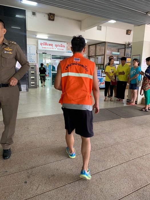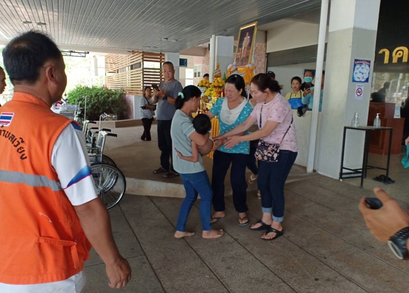 เจ้าหน้าที่จึงตรวจดูสภาพร่างกายเบื้องต้นและพบว่าเด็กมีสติรวมทั้งยังแข็งแรงดีอยู่จึงได้ให้อาหารอ่อนประเภทขนมปัง จากนั้นจะได้ตรวจดูร่างกายส่วนอื่นๆ โดยเฉพาะรอยขีดข่วนตามแขนขา ลำตัว รวมถึงใบหน้าบริเวณใต้ตาด้านซ็าย จมูก ฯลฯ เพื่อทำการรักษาอาการตามขั้นตอนต่อไป
