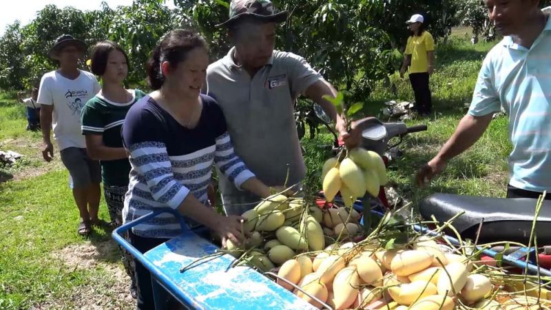 โดยวันนี้คุณเฉลิมชัย – คุณกัลยาและบุตรสาวได้มาช่วยกันเก็บมะม่วงน้ำดอกไม้สีทองรุ่นแรกล๊อตแรกของปีนี้ โดยมีลูกค้าเจ้าประจำในพื้นที่จังหวัดสงขลาที่สั่งจองไว้ล้วงหน้าทราบข่าวว่าสวนมะม่วงน้ำดอกไม้ เฉลิมชัยจะเก็บมะม่วงน้ำดอกไม้สีทองรุ่นแรกล๊อตแรกวันนี้ ต่างเดินทางมาซื้อและเก็บมะม่วงน้ำดอกไม้สีทองจากต้นด้วยตนเองอย่างมีความสุข โดยทุกคนได้ช่วยเก็บให้เจ้าของสวนด้วยและต่างเซลฟีกับช่อมะม่วงน้ำดอกไม้สีทองโดยไม่เบื่อหน่ายเลยแม้ว่าสภาพอากาศจะร้อนก็ตาม
