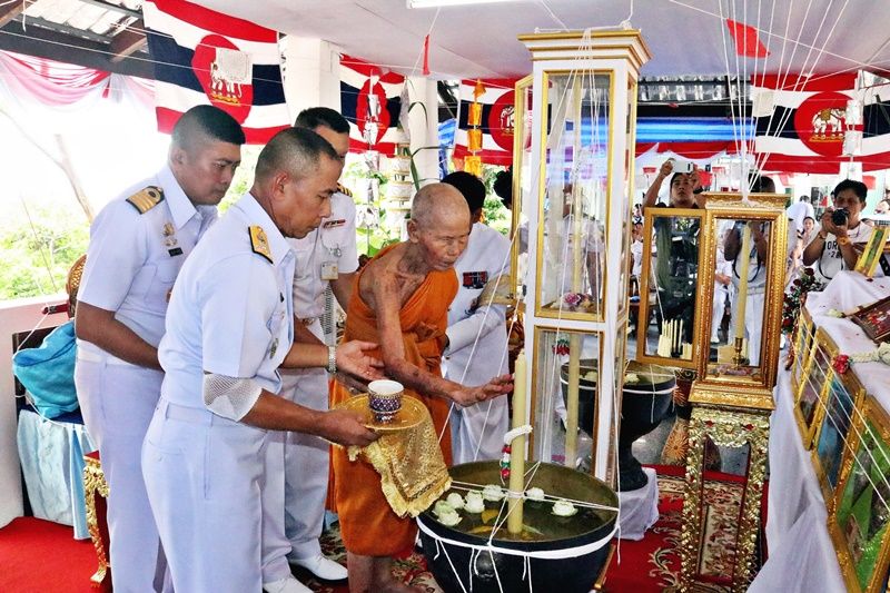 เมื่อวันที่ 29 มิถุนายน 2562 ที่ยอดเขาแหลมปู่เจ้า ศาลเสด็จเตี่ย อ.สัตหีบ จ.ชลบุรี พระครูสังฆกิจบูรพา (หลวงปู่บัว ถามโก) เกจิแห่งจังหวัดตราด เป็นประธานประกอบ พิธีพุทธาภิเษก (ปลุกเสกเดี่ยว) เหรียญ พลเรือเอก พระเจ้าบรมวงศ์เธอ พระองค์ เจ้าอาภากรเกียรติวงศ์ กรมหลวงชุมพรเขตอุดมศักดิ์ รุ่น บูรณะศาลเสด็จเตี่ย แหลมปู่เจ้า โดยมี พลเรือโท ชุมศักดิ์ นาควิจิตร ผู้บัญชาการฐานทัพเรือสัตหีบ นายอนุชา อินทศร นายอำเภอสัตหีบ คณะนายทหารชั้นผู้ใหญ่ ข้าราชการ ทหาร ลูกจ้าง พนักงานราชการ เข้าร่วมในพิธีเป็นจำนวนมาก