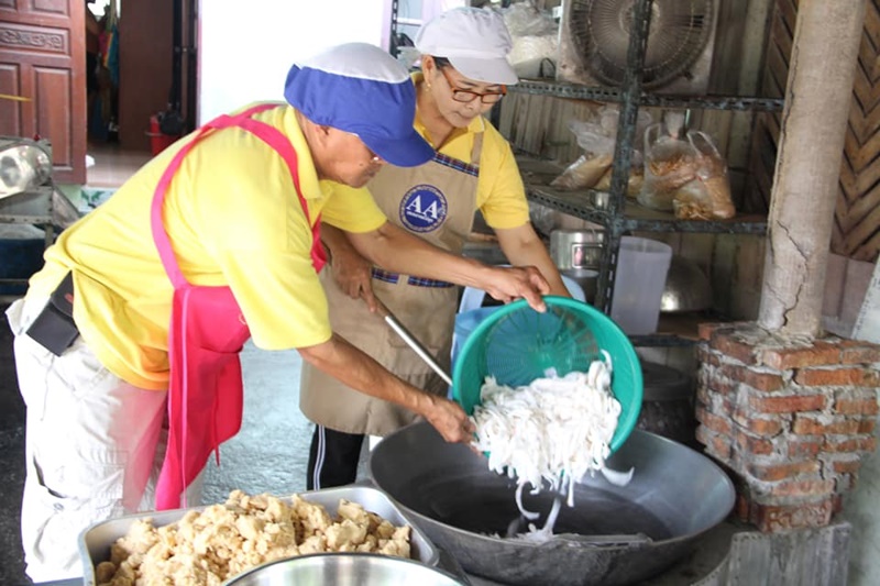 ส่วนขั้นตอนการทำใช้เวลาเคี่ยวกวนนานมาก เริ่มจากใช้เนื้อมะพร้าวน้ำหอมประมาณ 4 กิโลกรัม กะทิสด 8 กิโลกรัม น้ำตาล 5 กิโลกรัมครึ่ง แบะแซที่ทำให้เหนียว ประมาณ 4 กิโลกรัมครึ่ง งา 3 กิโลกรัม ถั่ว 3 กิโลกรัม ข้าวตรอก 1 กิโลกรัม 2 ขีด ข้าวราง 3 กิโลกรัม ใส่น้ำมะพร้าวน้ำหอมลงไปในกระทะ พร้อมกับใส่เนื้อมะพร้าว น้ำตาล หางกะทิ เคี่ยวไปเรื่อย ๆ โดยใช้ไฟอ่อน จากนั้นใส่หัวกะทิลงไปพอแห้งจึงใส่แบะแซ จะมีกลิ่นของน้ำตาลที่เคี่ยวโชยออกมาจากกระทะส่งกลิ่นหอมชวนกิน ประมาณ 4 ชั่วโมง สังเกตเห็นน้ำตาลเริ่มเหนียวเป็นสีน้ำตาลแดง จึงยกออกจากเตาแล้วจากนั้นนำส่วนผสมต่าง ๆ ลงไปกวนให้เข้ากันจนกลายเป็นเนื้อเดียวกัน จึงตักใส่กะละมังและรอให้อุ่นจึงตักใส่ถุง 1 ละครึ่งกิโลกรัม และ ถุงละ 2 ขีด ขายกิโลกรัมละ 150 บาท