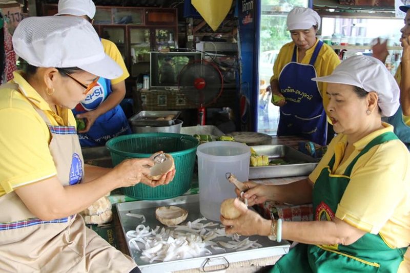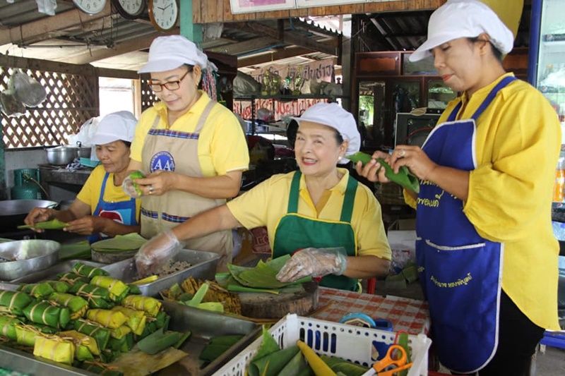 ไปชิมกันเลยจ้า รับรองอร่อยจริง ขนมไทยๆ พื้นบ้านของกลุ่มสตรีแม่บ้านตำบลสามเรือน ตั้งอยู่ในซอย 4 บ้านคง หมู่ที่ 1 ตำบลสามเรือน อำเภอเมือง จังหวัดราชบุรี ได้รวมกลุ่มสมาชิก 15 คนทำอาหารพื้นบ้าน ขึ้นเมื่อประมาณปี 2557 ด้วยการนำเงินของสมาชิกร่วมหุ้นๆ คนละ 500 บาท เพื่อซื้ออุปกรณ์การผลิต อาทิ เครื่องขูดมะพร้าว เครื่องคั้นกะทิ และวัสดุอื่น ๆ เพื่อนำมาทำขนมหลายชนิดจำหน่ายสร้างรายได้ภายในชุมชน อาทิ ขนมกระยาสารท ที่ขึ้นซื่อ ข้าวต้มมัดไส้กล้วย ไส้เผือก ขนมตาล มะพร้าวแก้ว หมี่กรอบสามรส ลูกลานลอยแก้ว พร้อมทั้งขนมมงคลในงานพิธีต่าง ๆ รับสั่งทำตลอดทั้งปี