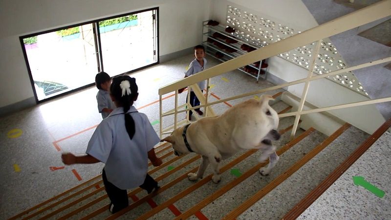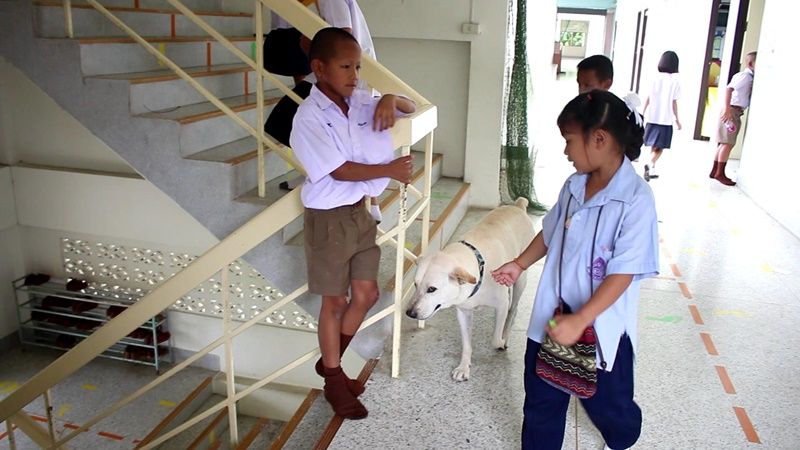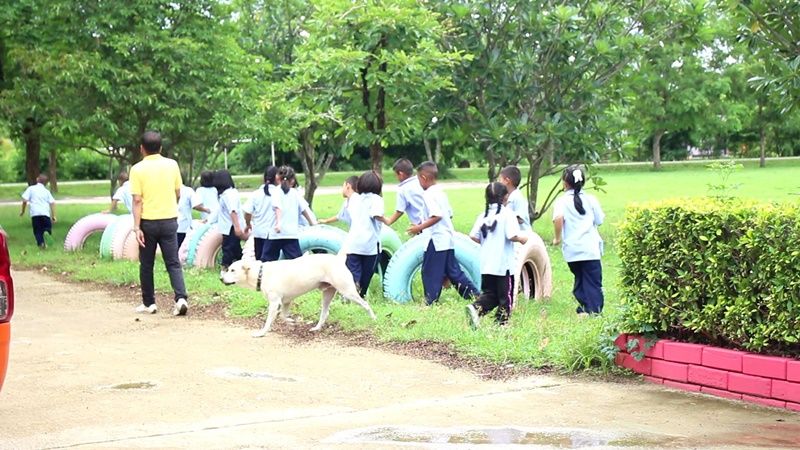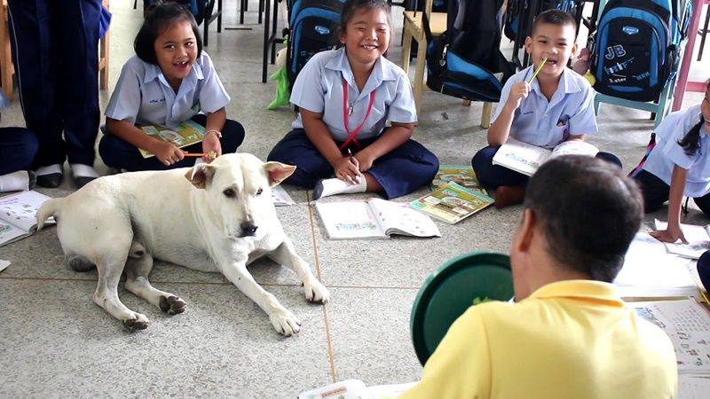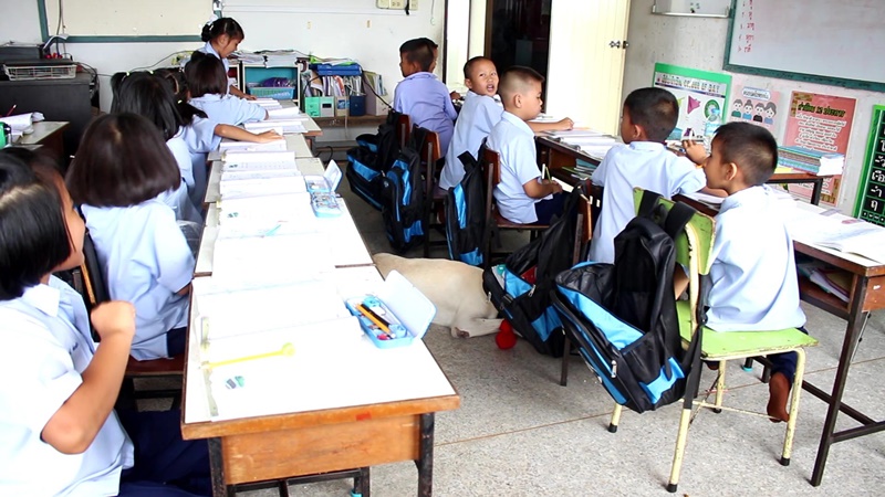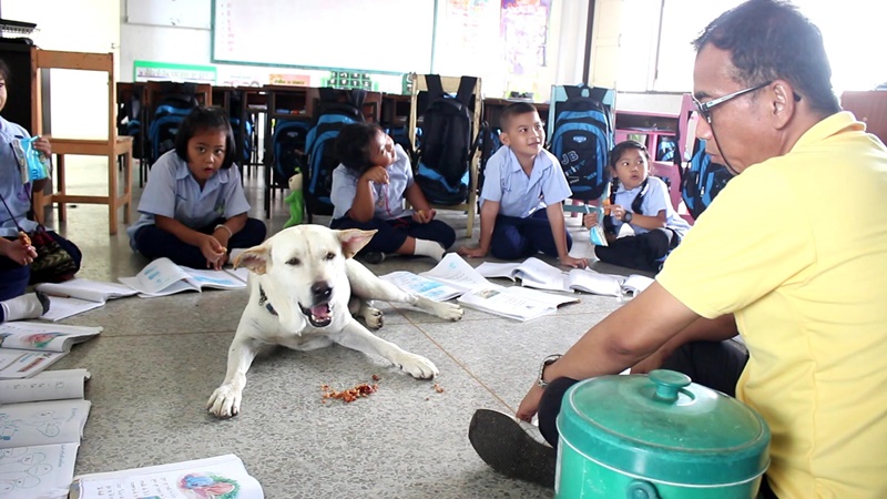 'เจ้าเบิ้ม' สุนัขวัย 5 ขวบ 1 ในสมาชิกชั้น ป.1 ที่เข้าเรียนพร้อมเด็กๆ ภายในห้องเรียน จนเป็นขวัญใจประจำโรงเรียนบ้านหนองตาพุดที่ราชบุรี