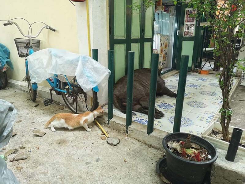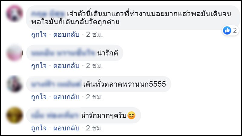 งานนี้ ผู้ที่พักอาศัยอยู่ในระแวกใกล้เคียงต่างเข้ามาแชร์ภาพและเล่าความน่ารักน่าเอ็นดูเจ้าทอง ต่างก็บอกว่าในระแวกนี้ไม่มีใครที่ไม่รู้จักเจ้าทอง เพราะเจ้าทองจะเดินเล่น ลัดซอยโน้น ออกซอยนี้ นอกจากความเชื่องแล้ว บางครั้งง่วงที่ไหนก็จะนอนที่นั่นแถมยังเดินทางกลับวัดได้อย่างแม่นยำ จนกลายเป็นภาพชินตาของชาวบ้านในพื้นที่ไปเสียแล้ว