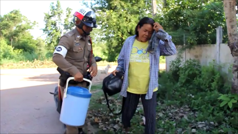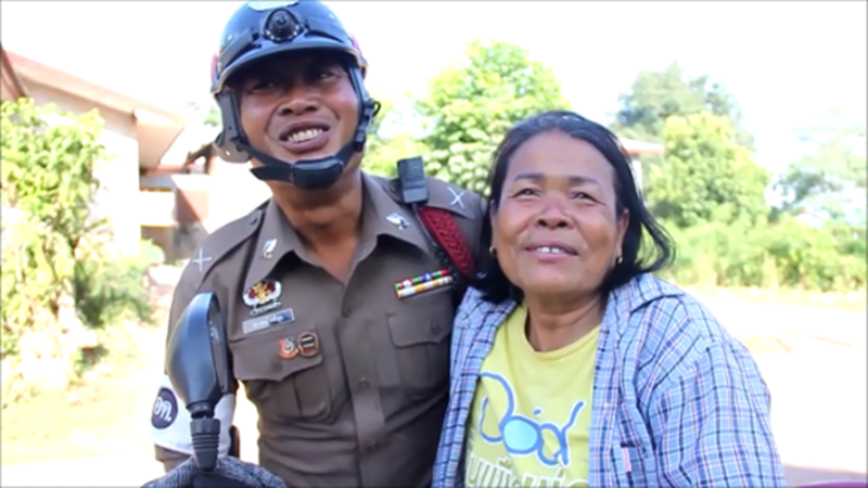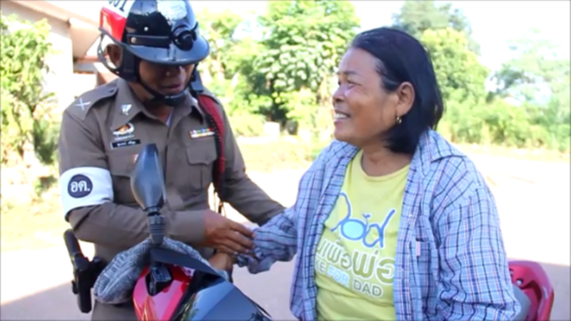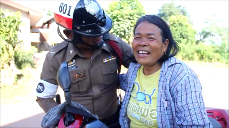 ตำรวจจราจรก็ใจดีรีบขับรถจักรยานยนต์ตามมาด้วยระยะทาง 8 กิโลเมตร มาถึงทางตำรวจได้พูดอะไรบ้างก็ไม่รู้ สุดท้ายหลานชายตนที่ไม่อยากไปโรงเรียนก็ลุกจากที่นอนรีบไปสอบทันที ตนดีใจอย่างมาก และขอบคุณน้าตำรวจที่ช่วยให้หลานไปสอบ