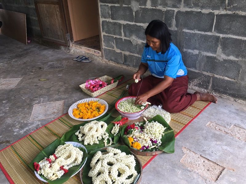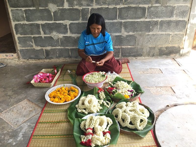 วันที่ 12 สิงหาคม 2562 ผู้สื่อข่าวลงพื้นที่ ต.สังขะ อ.สังขะ จ.สุรินทร์ เพราะชุมขนนี้มีคนร้อยพวงมาลัยขาย โดยเฉพาะนางกิตติยา สุขวาสนะ อายุ 45 ปี ชาวบ้านโคกสมบัติ หมู่ 3 ต.สังขะ อ.สังขะ จ.สุรินทร์ ที่ทำอาชีพนี้มาเป็น 10 ปีแล้วและเพิ่งมาเอาจริงจังเมื่อ 5 ปีที่ผ่านมา โดยดอกมะลิทั้งหมดที่นำมาร้อยเป็นพวงมาลัย นายกิตติยา จะปลูกเอง ร้อยเอง ขายเอง โดยไม่ได้จ้างใครทำ หรือซื้อใครมา จากปลูกไม่กี่ต้น ก็ขยายขึ้นมาเรื่อยๆ จนพอกับแรงผลิตของตัวเอง