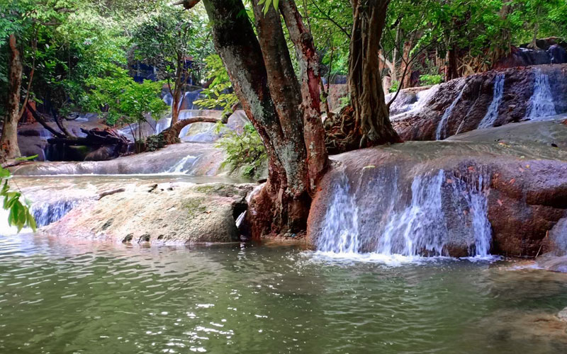 ซึ่งอยู่ทางทิศตะวันออก ห่างจากบริเวณ น้ำตกประมาณ 1.5 กิโลเมตร และเป็นธารน้ำตกที่ไหลเลาะ มาตามทางที่ลาดชัน ตกปะทะกับหินผาที่เป็นชั้นๆ นับได้ไม่ต่ำกว่า 10ชั้น แล้วไหลลงไป บรรจบกับแม่น้ำป่าสักโดยรอบๆบริเวณน้ำตกจะร่มรื่นไปด้วย ต้นไม้ใหญ่น้อยนานาชนิด ที่ขึ้นปกคลุม มีหินงอก หินย้อย เกิดขึ้นหลายแห่ง และหินที่บริเวณน้ำตก มีลักษณะพิเศษ คือไม่ลื่น นักท่องเที่ยวสามารถเดินผ่าน ไปมาได้สะดวก และเสน่ห์ อีกอย่างหนึ่ง ของน้ำตกแห่งนี้ ก็คือ มีน้ำไหลแรงตลอดทั้งปี