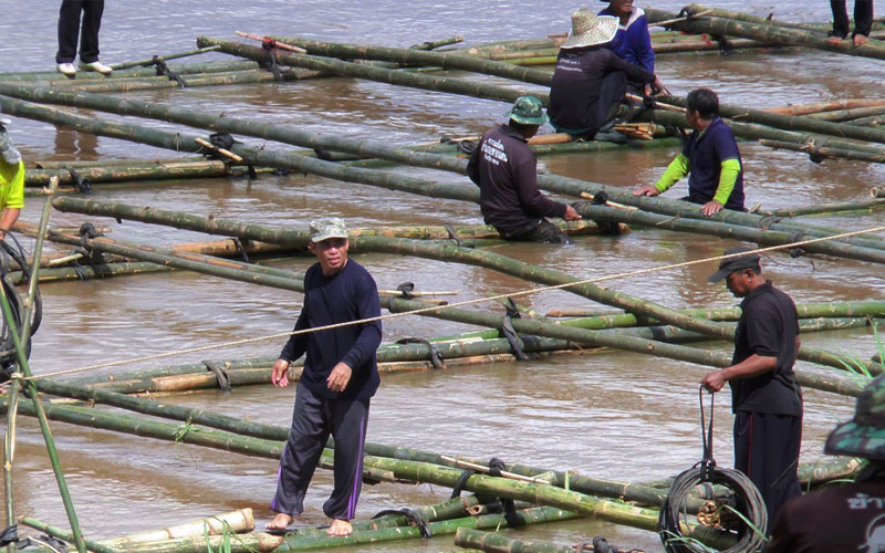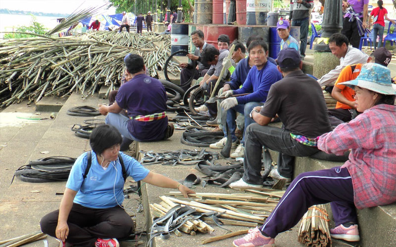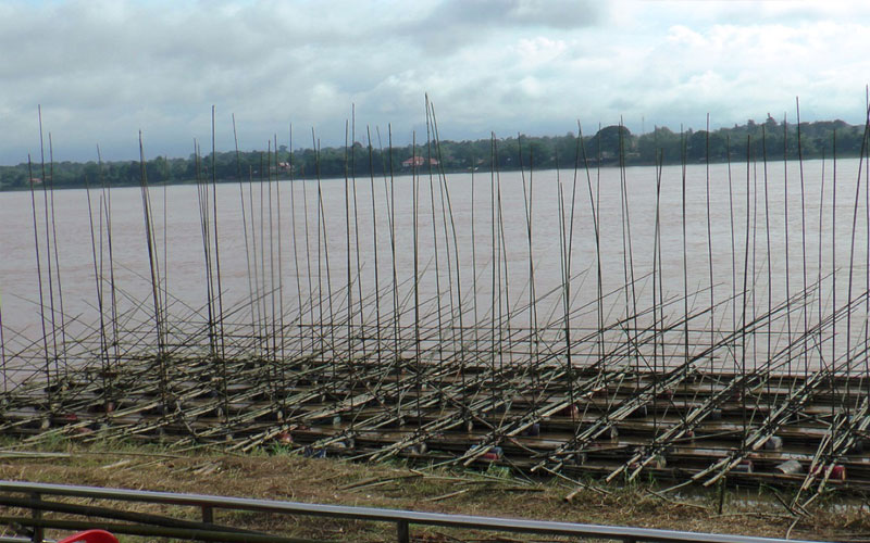 ในสมัยโบราณคนที่มีบ้านเรือนอยู่ใกล้กับแม่น้ำโขง จึงสร้างเรือไฟที่ทำด้วยท่อนกล้วย หรือไม้ไผ่ต่อเป็นลำเรือ ให้สามารถลอยไปตามสายน้ำ โดยใช้ผ้าเก่ามาฉีกเป็นริ้ว ชุบน้ำมันยางแล้วตากแห้ง นำไปพันกับเส้นลวดในโครงสร้างรูปเรือแล้วจุดไฟ ภายในเรือตกแต่งด้วยดอกไม้ ธูป เทียน แล้วใส่ข้าวปลาอาหาร กล้วย อ้อย หมากพลู บุหรี่ ฝ้าย ในไหมหลอด เสื่อ หรือสิ่งของที่ต้องการบริจาคทานบรรจุลงเรือไฟ ก่อนจะพัฒนามาเป็นฐานทำด้วยแพลุกบวบ หรือผูกติดกับถังน้ำมันเก่า เพื่อเป็นทุนลอยน้ำ ตัวเรือทำจากไม้ไผ่มัดเป็นแพและถังน้ำมันมัดเป็นทุ่น ส่วนโครงเรือไฟ(นั่งร้าน) ทำจากไม้ไผ่รวกหรือไม้ไผ่บ้าน เป็นต้น