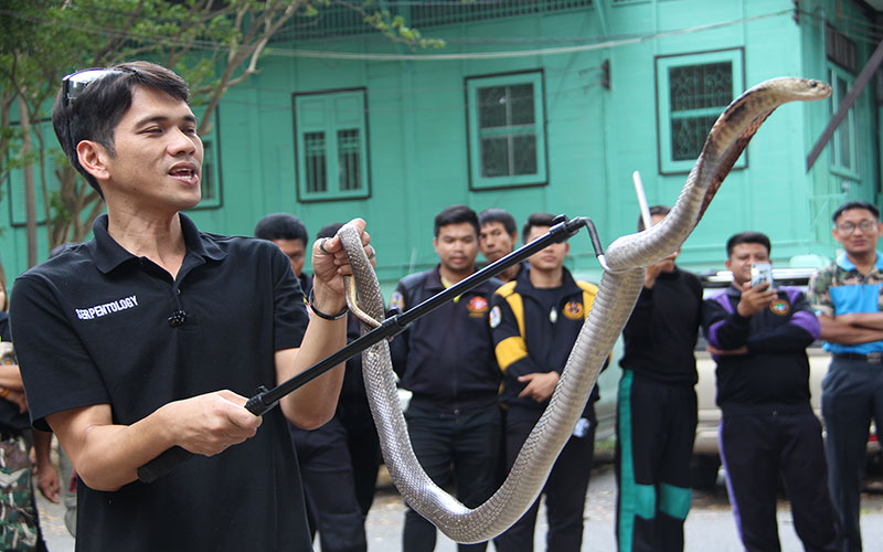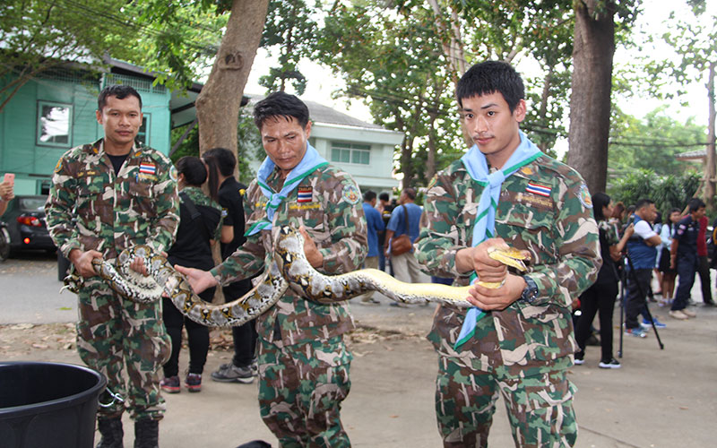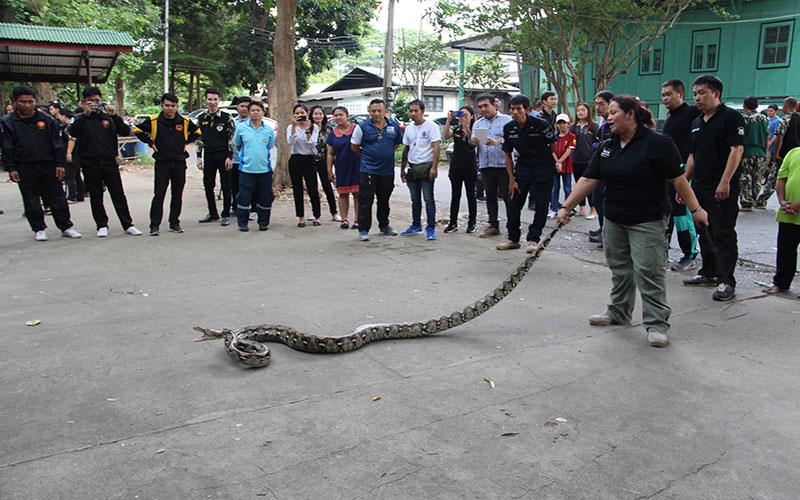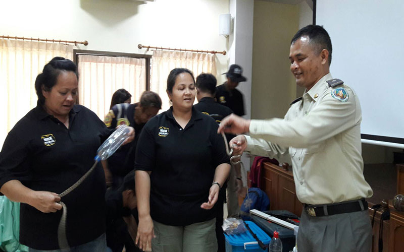 นายประทีป เหิมพยัคฆ์ ผู้อำนวยการส่วนอนุรักษ์สัตว์ป่า เปิดเผยว่า ได้รับความร่วมมือจากมูลนิธิ และกลุ่มอสรพิษวิทยามาเป็นวิทยากรบรรยายและสาธิตการจับงูหลายชนิด หลังจากพบงูในธรรมชาติส่วนหนึ่งถูกทำร้ายจากคน รวมทั้งบางคนอาจถูกสัตว์ทำร้าย ทำให้ต้องมีการจัดฝึกอบรมขึ้นให้กับหน่วยงาน เจ้าหน้าที่ที่เกี่ยวข้อง ประมาณ 60 คน ภาคเช้าเป็นภาคทฤษฎี เรียนรู้ข้อกฎหมายเนื่องจากงูเป็นสัตว์ป่าคุ้มครอง ภาคบ่ายเป็นภาคปฏิบัติฝึกให้เจ้าหน้าที่รู้จักพฤติกรรม การฝึกจับงูโดยไม่ทำให้งูและคนจับไม่เป็นอันตรายเกิดความปลอดภัย