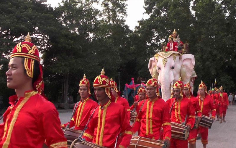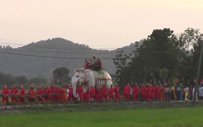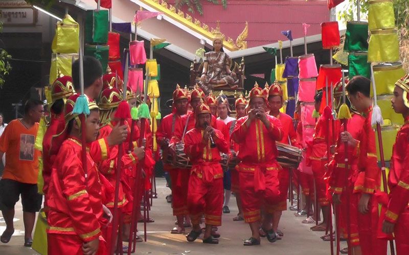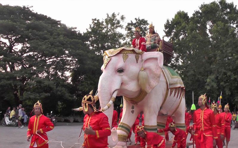 โดยตั้งแต่ช่วงเย็น ได้มีการจัดกิจกรรมการสวดชัยมงคลคาถา เทศน์คาพัน แห่ข้าวพันก้อน การตักบาตรเทโว เทศน์มหาชาติกัณฑ์ที่ 1-10 หลังพิธีต่าง ๆ เสร็จสิ้น จึงได้จัดพิธีแห่พระเวสสันดรจากในวิหารซึ่งปั้นจำลองด้วยหุ่นขี้ผึ้ง อันเชิญขึ้นประทับพระยาคชสาร หรือ พญาช้างเผือกที่จำลองขึ้นอย่างสวยงาม นอกจากนี้ยังมีการจัดขบวนแห่อันเชิญประกอบด้วย ทหาร เสนาอำมาตย์ สวมเครื่องแบบชุดทหารโบราณ และข้าทาสบริวารต่างๆ แต่งกายในยุคสมัยไทยโบราณ อย่างสมเกียรติและสวยงาม