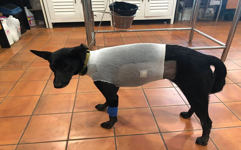 เจ้าหน้าที่องค์กรจัดสวัสดิภาพสัตว์บ้านหมายิ้มเข้าช่วยเหลือสุนัขถูกยิงด้วยฉมวกทะลุหน้าท้องในค่ายทหาร นำตัวผ่าตัดปลอดภัยตั้งชื่อใหม่”เจ้าหมีดำ”ประสานวอชด๊อกไทยแลนด์เข้าแจ้งความดำเนินคดีกับผู้ก่อเหตุ