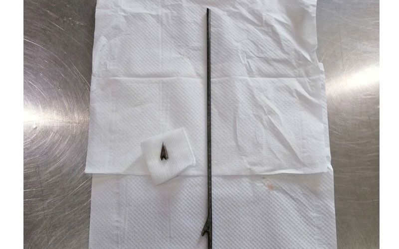 และรีบพาไปรักษาที่คลินิกหมอไก่สองทะเลสัตวแพทย์ ในอ.เมืองสงขลา จากการตรวจของสัตวแพทย์พบว่าฉมวกได้แทงทะลุตับ กระเพาะ กระบังลม และลำไส้ อาการน่าเป็นห่วงแต่หลังจากที่ได้ทำการผ่าตัดช่วยเหลือสุนัขตัวนี้ปลอดภัยแล้วสามารถเดินได้และอยู่ระหว่างการพักฟื้น และตั้งชื่อให้มันว่า”เจ้าหมีดำ”