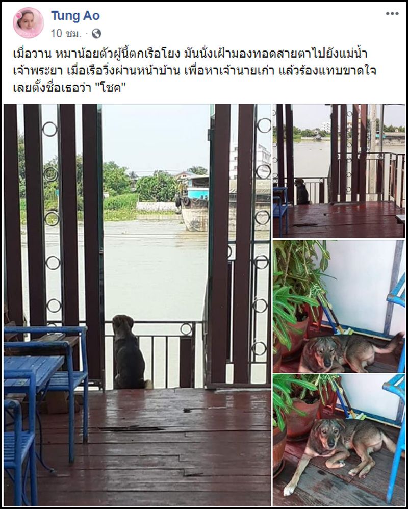 24 ตุลาคม 2562 เรื่องราวสะเทือนใจคนรักสัตว์ที่ถูกโพสต์โดยผู้ใช้เฟซบุ๊กชื่อ Tung Ao พร้อมระบุว่า เมื่อวาน หมาน้อยตัวผู้นี้ตกเรือโยง มันนั่งเฝ้ามองทอดสายตาไปยังแม่น้ำเจ้าพระยา เมื่อเรือวิ่งผ่านหน้าบ้าน เพื่อหาเจ้านายเก่า แล้วร้องแทบขาดใจ เลยตั้งชื่อเธอว่า "โชค" เป็นภาพสุนัขตัวหนึ่งที่กำลังนั่งรอเจ้าของอยู่ริมน้ำ
