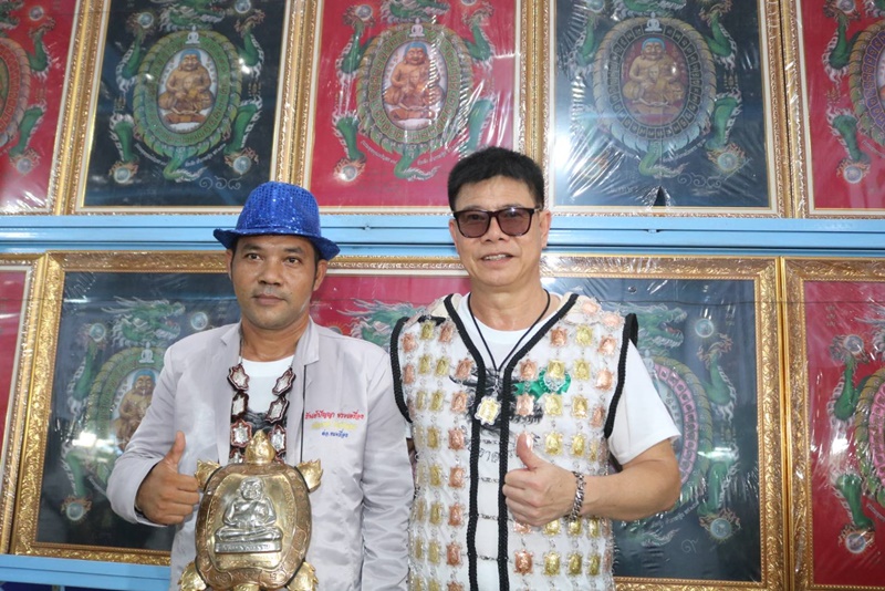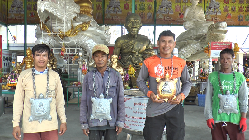 การคล้องพระธรรมาดาโลกไม่จำ มันต้องห้อยแบบนี้ใครเห็นแล้วต้องร้อง "โอโห" โลกถึงจะจำ อย่างเช่นชาย 4 คนนี้คล้องพระพญาเต่าโล่ที่มีน้ำหนักองค์ละ 2 กิโลกรัม เผยห้อยที่คอเป็นประจำทุกวัน ขณะที่เจ้าของโรงงานผลิตนั่งร้านในยครปฐม นำเหรียญเต่ารุ่น "พญาเต่ารวยไม่หยุด" 200 องค์หนัก 20 กิโลฯมาทำเป็นเสื้อกั๊กใส่ติดตัวด้วยความศรัทธาจริงๆ