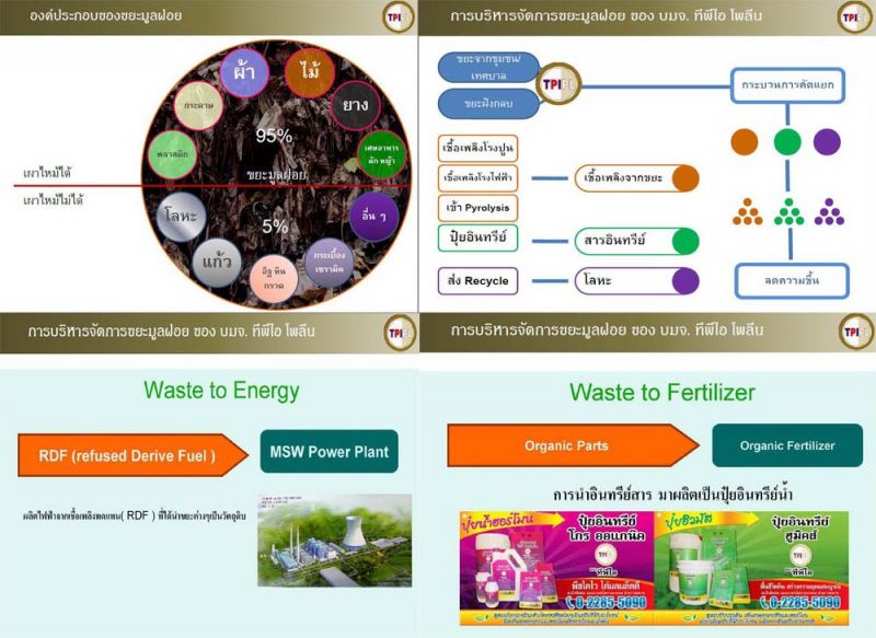 อย่างไรก็ตาม บทความดังกล่าวได้ยกตัวอย่าง “โรงไฟฟ้าพลังงานขยะที่ดำเนินการได้อย่างถูกต้องและมีประสิทธิภาพ” ไว้เช่นกัน ซึ่งหนึ่งในนั้นคือ “TPIPP” บริษัท ทีพีไอโพลีน เพาเวอร์ จำกัด (มหาชน) อ.แก่งคอย จ.สระบุรี รับขยะจากชุมชนและตามหลุมฝังกลบต่างๆ มาผ่านกระบวนการคัดแยกและแปรรูปเป็นเชื้อเพลิง RDF (Refuse Derived Fuel) หรือเชื้อเพลิงจากขยะที่เผาไหม้ได้สำหรับใช้ในโรงงานอุตสาหกรรม ส่วนขยะที่ไม่สามารถทำเป็นเชื้อเพลิง RDF ได้ เช่น ขยะอินทรีย์ จะถูกนำไปแปรรูปเป็นปุ๋ยสำหรับจำหน่ายให้ภาคเกษตรกรรมต่อไป