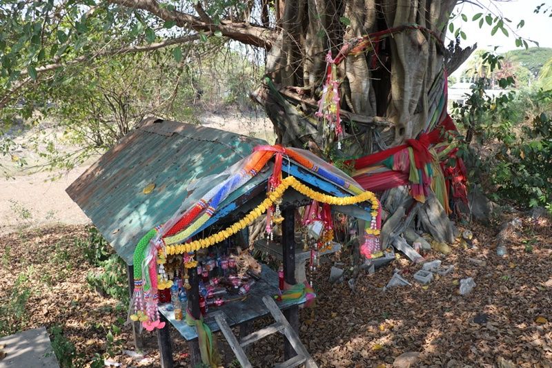 นายโอภาส พ่วงดี อายุ 70 ปีชาวบ้าน เล่าให้ฟังว่า ศาลเจ้าพ่อวิไลลักษณ์ เจ้าแม่กุลา ตั้งอยู่ที่บริเวณโคนต้นสะตือขนาดใหญ่อายุกว่า 100 ปีที่ปัจจุบันนั้นกลายเป็นต้นโพธิ์ขนาดใหญ่อยู่ริมคลองหนองรี เป็นที่สิงสถิตของจระเข้จำนวนมากที่ในอดีตที่ผ่านมามีชาวบ้านพบเห็นเป็นประจำและเป็นที่ศรัทธาของชาวบ้าน ซึ่งจะมาทำการบนบานศาลกล่าวเป็นประจำ ซึ่งสมัยก่อนนั้นจะใช้การสัญจรไปมากันทางเรือ คลองหนองรีนั้น มีความกว้างกว่า 100 เมตร ยาวหลาย 10 กิโลเมตร ผ่านหลายตำบลเชื่อมต่อกับแม่น้ำน้อยและมีแรงนี่ไหลเชี่ยว เวลาเรือแล่นผ่านจะพบจระเข้โผล่ขึ้นให้เห็น ซึ่งชาวบ้านมีความเชื่อกันว่าเป็นจระเข้เจ้าที่ลือกันว่าด้านลางต้นสะตือใหญ่นั้นมีโพลงขนาดใหญ่คล้ายถ้ำเป็นวังทที่อยู่อาศัยของจระเข้ ส่วนผู้ที่เลี้ยงวัวควายนั้นหากจะให้สัตว์เลี้ยงลงน้ำข้ามคลองต้องยกมือไหว้บอกเล่า ถึงจะข้ามคลองได้