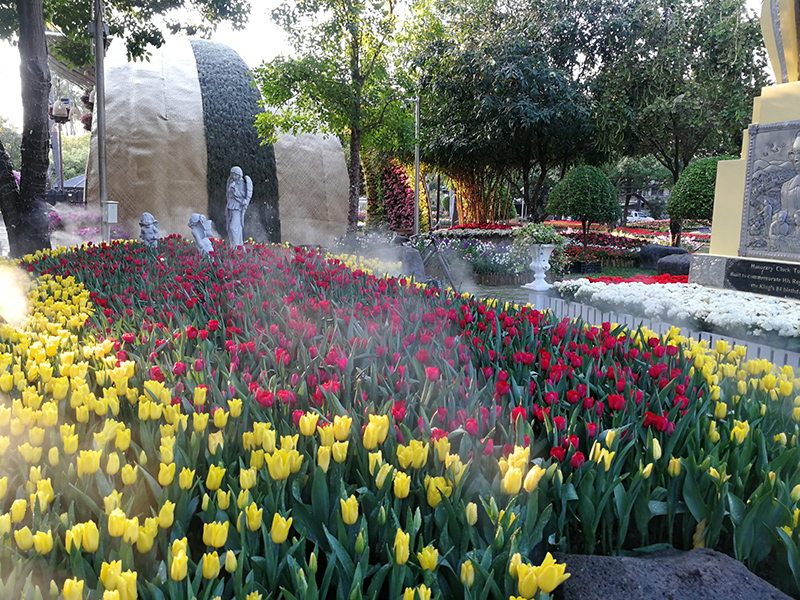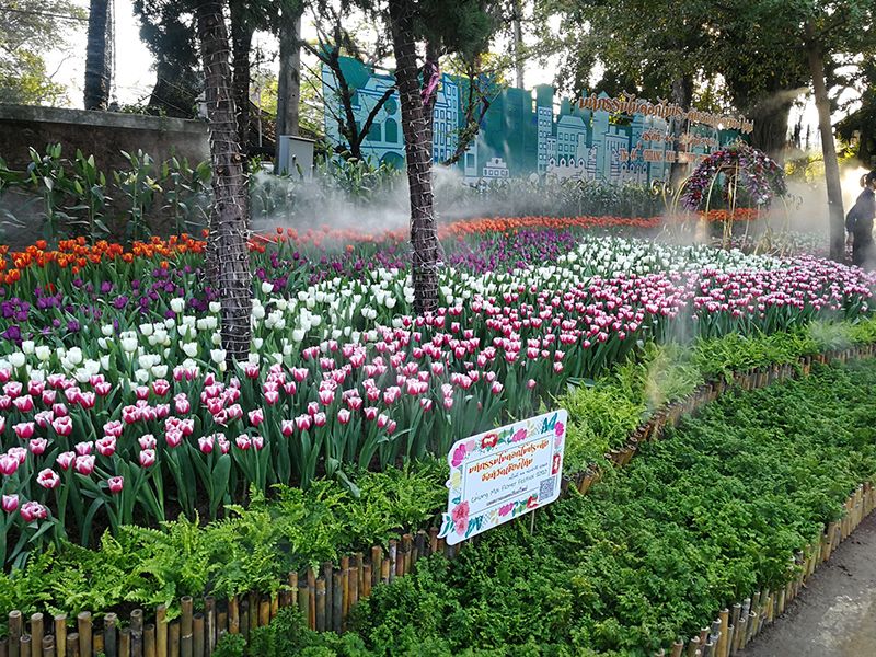 จุดที่สำคัญที่สุดของงานก็คือ ที่บริเวณสวนสาธารณะหนองบวกหาด ที่เทศบาลนครเชียงใหม่ได้นำดอกไม้นานาพันธุ์นับแสนดอก ที่มีทั้งความสวยงาม หาชมได้ยาก มาประดับตกแต่งและจัดแสดงโชว์ให้กับนักท่องเที่ยวได้ชื่นชม ซึ่งไฮไลท์ก็คงหนีไม่พ้นดอกทิวลิป ที่เป็นดอกไม้เมืองหนาวและหาชมได้ยาก ซึ่งได้นำดอกทิวลิปกว่า 25,000 ดอก มาจัดประดับตกแต่งให้นักท่องเที่ยวได้ชื่นชมกันอย่างใกล้ชิด