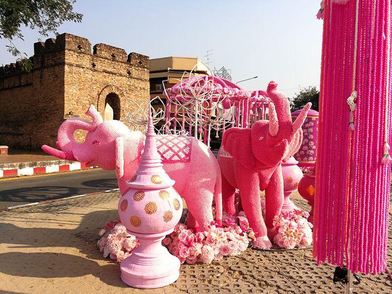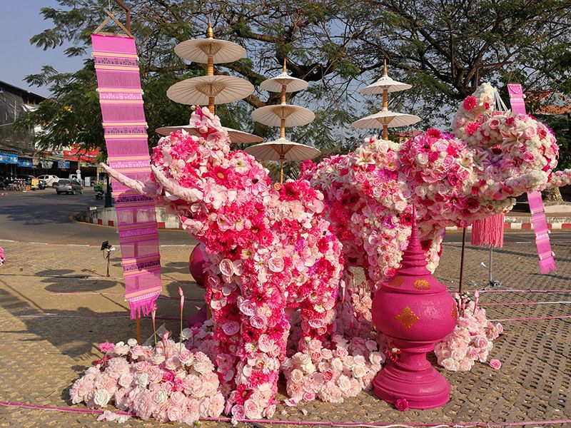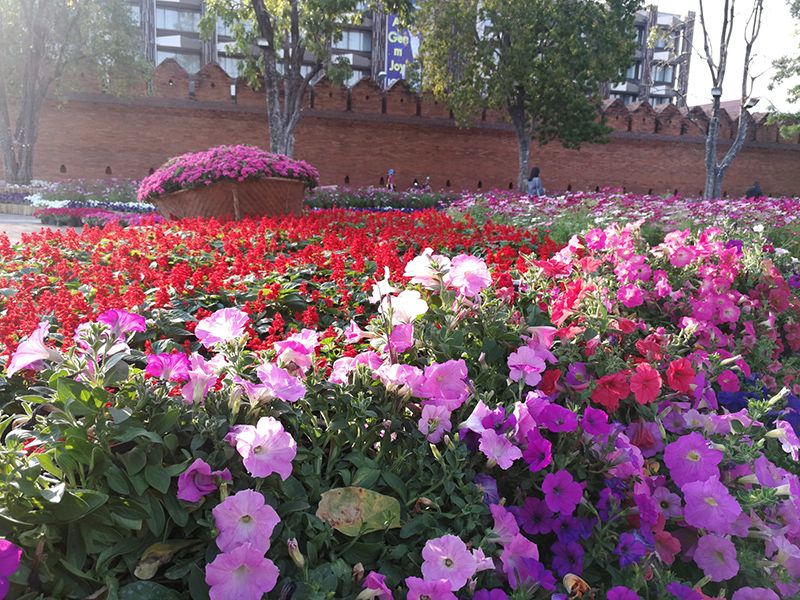 บรรยากาศรอบเมืองเชียงใหม่ ตามบริเวณประตูเมือง แยกมุมเมือง และบริเวณโดยรอบคูเมือง ได้ถูกประดับตกแต่งไปด้วยดอกไม้นานาพันธุ์ที่สวยงาม เช่นเดียวกับบริเวณข่วงประตูท่าแพ ซึ่งเป็นจุดศูนย์รวมของนักท่องเที่ยว ก็ได้มีการนำดอกไม้นานาชนิดมาจัดประดับตกแต่งสถานที่อย่างสวยงาม อลังการ เพื่อให้เป็นจุด Land Mark ให้ประชาชนและนักท่องเที่ยวได้ชื่นชมความงามและถ่ายรูปเก็บเป็นที่ระลึก