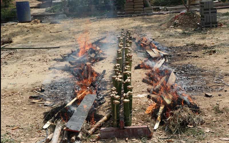 วันที่ 7 ก.พ.63 ที่วัดศุขเกษมธรรมิการาม ตำบลเทวราช อำเภอไชโย จังหวัดอ่างทอง ชาวบ้านลาวได้ร่วมกันสืบสานประเพณีกำฟ้า บุญเดือนสาม เผาข้าวหลาม ปิ้งข้าวจี่ ถวายบัตรพลีเทวดา ประเพณีกำฟ้า เป็นประเพณีที่สำคัญของชาวไทยพวน ที่มีอาชีพทำนา วิถีชีวิตผูกพันกับฟ้า ไม่กล้าทำให้ฟ้าพิโรธ เพราะกลัวฟ้าฝนฟ้าจะไม่ตกต้องตามฤดูกาล การจัดงานบุญกำฟ้าก็เพื่อให้ผีฟ้าเทวดามีความพึงพอใจ อีกทั้งยังเป็นการแสดงความขอบคุณผีฟ้าที่ประทานฝนให้ตกต้องตามฤดูกาลอีกด้วย และไม่พลาดส่องขันน้ำมนต์ในพิธีหาตัวเลขนำไปเสี่ยงดวง