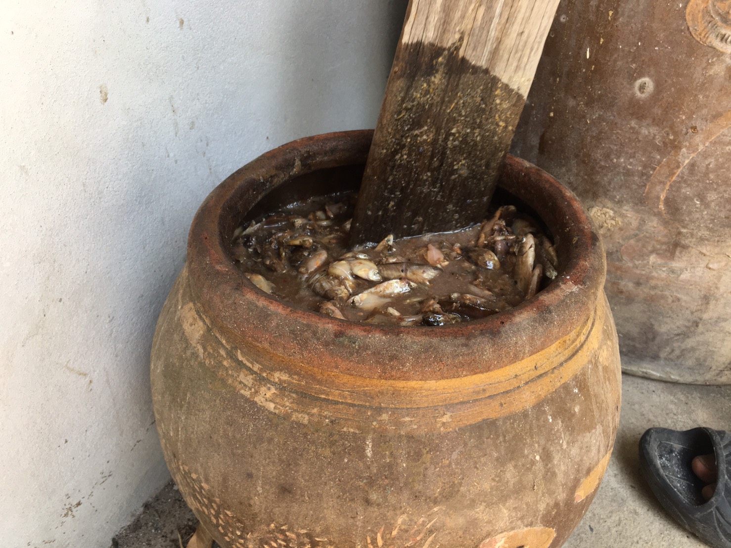 เมื่อได้มาแล้วก็นั่งถอดเกล็ด แหวะเอาขี้ออกจนเสร็จ แล้วล้างปลา 3-4 ครั้ง/ น้ำ เพื่อให้สะอาด เอาปลาใส่ตะแกรงพักไว้เพื่อให้สะเด็ดน้ำ หลังจากนั้นเอาปลามาคลุกเกลือ สินเทา หรือเกลือเม็ดก็ได้ ปลา 1 กิโลกรัม เกลือก็ประมาณ2 ทัพพีใหญ่ๆ คลุกเคล้าให้ทั่ว เกลือต้องเค็ม ถ้าไม่เค็มปลาจะเน่า แล้วจึงนำไปใส่ภาชนะที่เตรียมไว้คือ โอ่ง ไห่ หรือกระปุ๊กต่างๆได้เช่นกัน แล้วปิดฝาด้วยถุงพลาสติกรัดเชือกให้แน่นเพื่อกันแมลงวันปลาร้าสูตรนี้คือไม่ใส่รำ ใส่แต่เกลือเพียงเท่านั้นคือแบบโบราณทำธรรมชาติจริง ทิ้งไว้เป็นปี ถึงจะเอามากิน”เคล็ดลับ” ไว้1ปีจะหอม นัว ไม่คาว