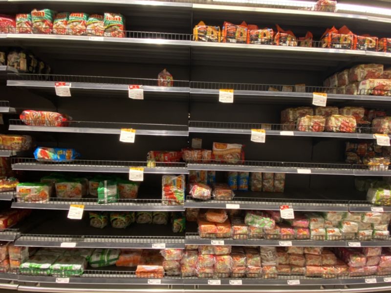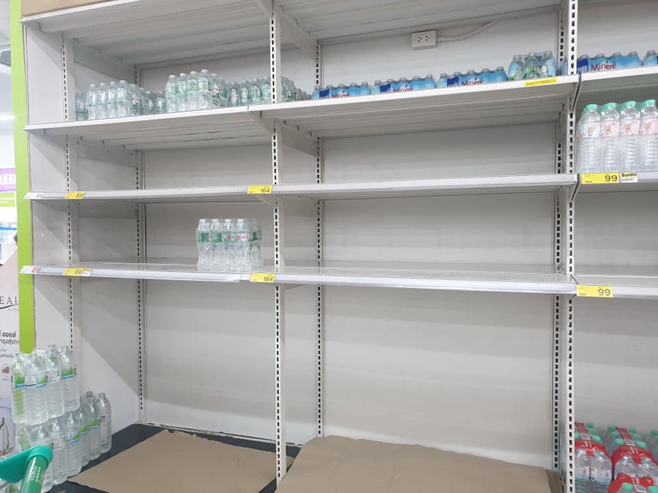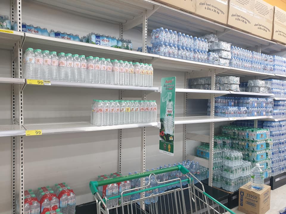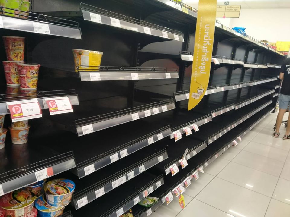 นอกจากนี้ บนโลกโซเชียลได้มีการโพสต์ภาพชั้นวางของที่ว่างเปล่า ที่ห้างสรรพสินค้าต่างๆทำให้รู้ว่าประชาชนมีการตื่นตัวเป็นอย่างมาก