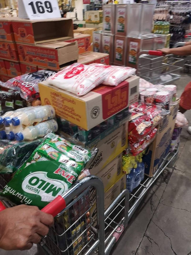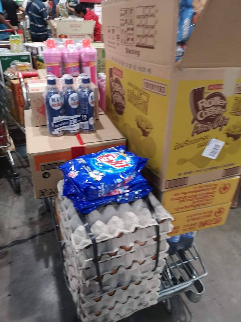ทั้งนี้ เมื่อมองด้วยตาเปล่าเห็นว่าประชาชนมีการซื้อ อาทิ บะหมี่กึ่งสำเร็จรูป (มาม่า) ปลากระป๋อง ปลากระป๋องทูน่า ผักกาดดองกระป๋อง สปาเกตตี พาสต้า ผลไม้กระป๋อง โจ๊กสำเร็จรูป ข้าวสาร น้ำตาล น้ำปลา และอื่นๆ