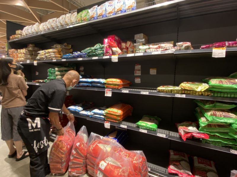 จากนั้น "ทีมข่าวเฉพาะกิจแนวหน้าออนไลน์" ได้ลงพื้นที่ห้างสรรพสินค้าดังแห่งหนึ่งย่านงามวงศ์วาน พบว่า ประชาชนเดินทางมาจับจ่ายใช้สอย ซื้อของกันเป็นจำนวนมาก และที่น่าตกใจเมื่อไปถึงแผนกข้าวสาร อาหารแห้ง มีประชาบชนจำนวนมากให้ความสนใจ และได้มีการสอบถามพนักงานว่าจะมีของมาลงอีกหรือไม่