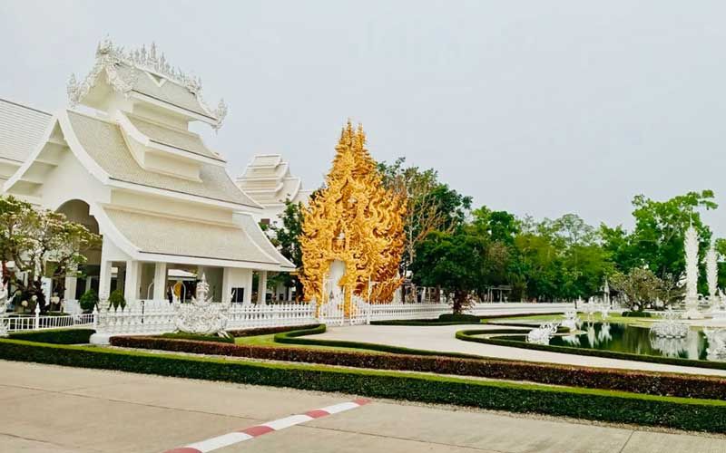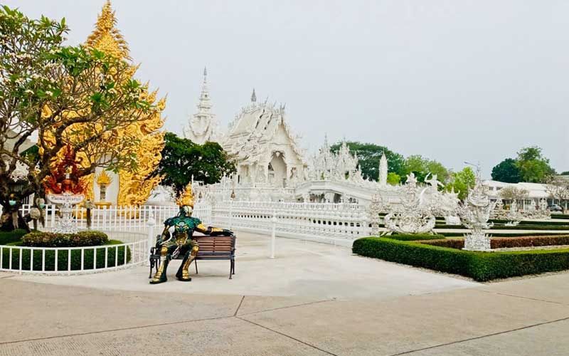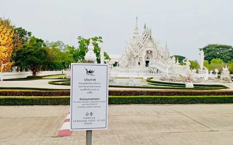 วันที่ 13 เม.ย.63 ผู้สื่อข่าวรายงานว่า จากสถานการณ์แพร่ระบาดของเชื้อไวรัสโคโรนา 2019 โควิด-19 ทำให้บรรยากาศการท่องเที่ยวของจังหวัดเชียงราย ในช่วงสงกรานต์ ต้องเงียบเหงาลงไปอย่างเห็นได้ชัด โดยจากที่มีนักท่องเที่ยวจำนวนมาก ทั้งชาวไทยและต่างประเทศ เดินทางมาชมความสวยงามของวัดร่องขุ่น อำเภอเมือง จังหวัดเชียงราย ที่ออกแบบและก่อสร้างโดยอาจารย์เฉลิมชัย โฆษิตพิพัฒน์ ศิลปินแห่งชาติ มาวันนี้อาจารย์เฉลิมชัย ได้ปิดวัดและงดท่องเที่ยวเพื่อป้องกันโควิด-19 มาตั้งแต่ปลายเดือนมีนาคม 2563 ทำให้เห็นภาพที่แตกต่างๆ วัดร่องขุ่นเงียบเหงา ไม่มีนักท่องเที่ยวแม้แต่คนเดียว และทางวัดก็ห้ามมีการเข้ามาท่องเที่ยวโดยเด็ดขาด