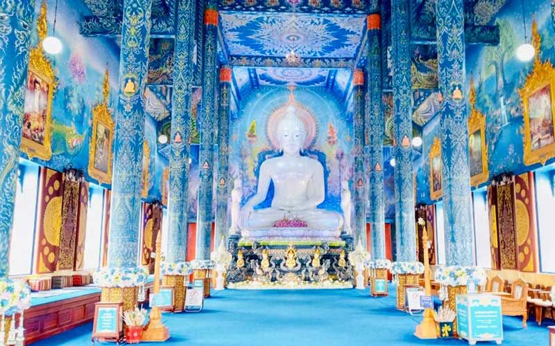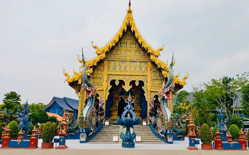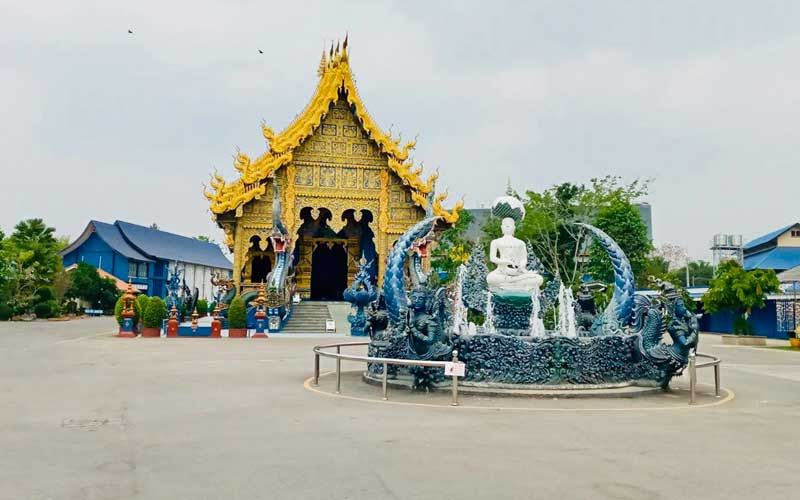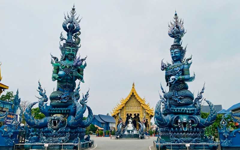 ไม่ต่างกันที่วัดร่องเสือเต้น อำเภอเมือง จังหวัดเชียงราย ซึ่งเป็นวัดสีน้ำเงินและอีกหนึ่งวัด ที่เมื่อถึงฤดูกาลท่องเที่ยว โดยเฉพาะสงกรานต์ จะมีชาวเชียงราย นักท่องเที่ยว เดินทางมาทำบุญ และถ่ายภาพเก็บความสวยงามไว้เป็นที่ระลึก มาวันนี้ สถานการณ์โควิด-19 ทำให้วัดเงียบเหงา ไม่มีนักท่องเที่ยวเดินทางมาท่องเที่ยวแม้แต่คนเดียว แต่ทั้งนี้สถานที่ท่องเที่ยวทั้ง 2 แห่ง ยังคงมีเจ้าหน้าที่ดูแลรักษาความปลอดภัยอย่างเง้มงวดเช่นเดิม
