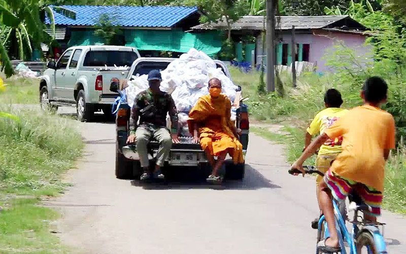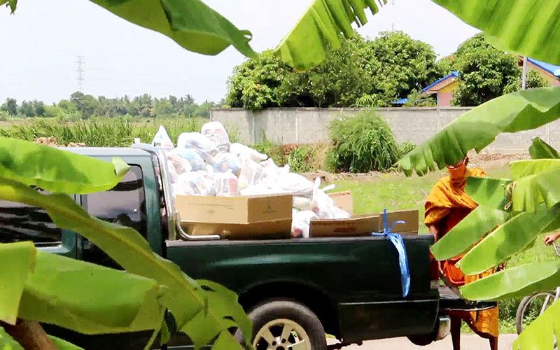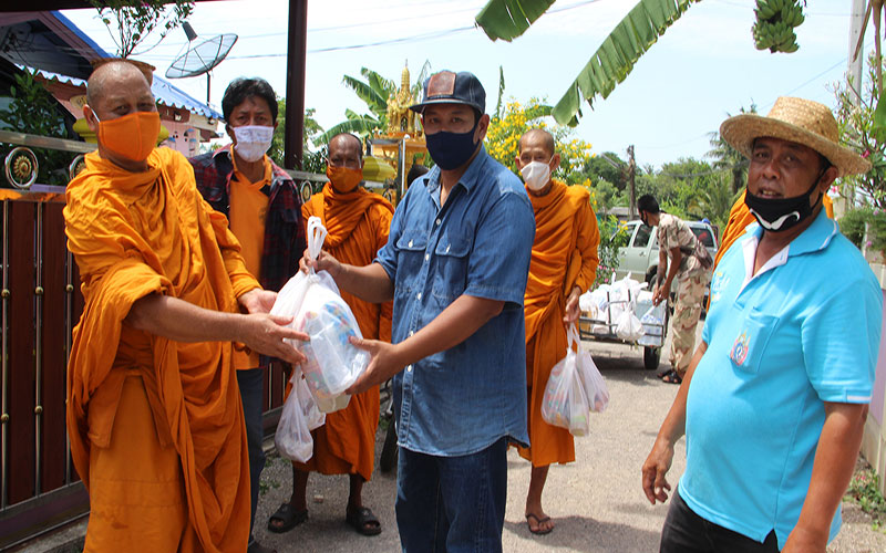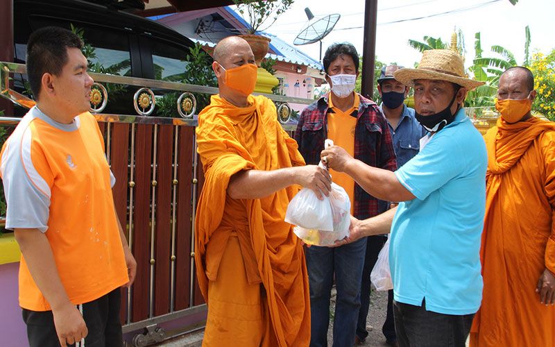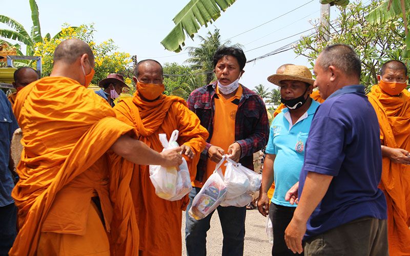 ซึ่งทางเจ้าอาวาสวัด ได้ร่วมกับชุมชน จัดทำถุงยังชีพ ดูแลช่วยเหลือชาวบ้านไปจนกว่าสถานการณ์จะคลี่คลายไปในทางที่ดีขึ้น