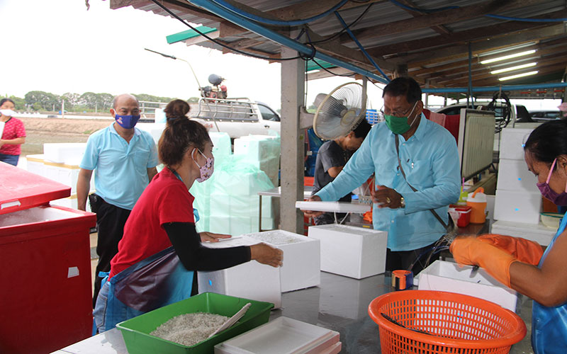 นายประกอบ ทรัพย์ยอดแก้ว เจ้าของบ่อกุ้งประกอบฟาร์ม และเป็นนายกสมาคมผู้เพาะเลี้ยงสัตว์น้ำไทย เปิดเผยว่า สำหรับการขายกุ้งช่วงวิกฤตโควิด – 19 จากที่ผ่านมาระบบการค้าขายกุ้ง กับปัจจุบันเปลี่ยนไปอย่างสิ้นเชิง ได้รับความเดือดร้อนมาก ทั้งเรื่องค่าอาหาร ค่าลูกพันธุ์ แรงงาน ค่ากระแสไฟฟ้า ค่าใช้จ่ายต่างๆ ถูกตัดระบบหมดเพราะขายของออกไม่ได้ แต่ยังโชคดีนิดที่ยังมีโอกาสที่ทุกคนอยู่กับบ้านกันหมด แต่ต้องบริโภค จะทำอย่างไรที่จะนำตรงนี้เป็นสะพานเชื่อมต่อไปหาผู้บริโภคได้ โดยเป็นโอกาสของผู้บริโภคมากที่ไปหาซื้อของสดที่ห้างสรรพสินค้าต่างๆ ก็จะไม่ได้สินค้าลักษณะสดๆแบบนี้รับประทาน