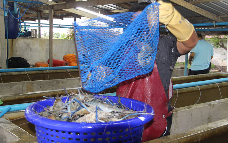 สำหรับกุ้งที่ฟาร์มเป็นการเลี้ยงกุ้งกรามเพศผู้ล้วน ไม่ได้เลี้ยงรวมตัวผู้ตัวเมีย ทำให้คุณภาพเนื้อแตกต่างกัน ความอร่อยก็ต่างกัน ต้องลองกินดูจะได้รู้ว่ากุ้งที่นี่แตกต่างจากที่อื่นขนาดไหน กล้ายืนยันในนามของนายกสมาคมผู้เพาะเลี้ยงสัตว์น้ำไทย ไม่ทำผู้บริโภคผิดหวัง