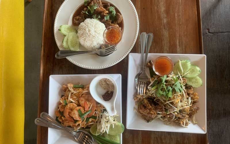 ข้าวหน้าหมูอบ ใช้กระดูกซี่โครงเสี้ยวพระจันทร์ เคี่ยวกับเครื่องปรุงที่คิดขึ้นมา ไม่ใช้น้ำตาลแต่ใส่น้ำผึ้งแท้ๆ แทนน้ำตาล 100 เปอร์เซ็นต์เคี่ยวนาน 1 ชั่วโมง ส่วนผัดไทยใช้เส้นจันทร์ลวกพร้อมกุ้งสดตัวโตผัดกับน้ำปรุงของทางร้าน เช่นเดียวกับหอยทอดก็คิดค้นหาวิธีการผสมแป้ง จนได้แป้งที่ลงตัวกรอบนอกนุ่มใน เมนูทุกจานใช้วัตถุดิบสดใหม่ชั้นดี เช่น หอยตัวใหญ่ กุ้งตัวโต ขายอาหารจานใหญ่คนกินจุๆ จานเดียวอิ่ม