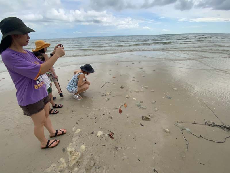 ขณะที่นักท่องเที่ยวจากกรุงเทพฯ ที่เดินทางมาเที่ยวที่หาดบานชื่น เมื่อเห็นแมงกะพรุนที่ลอยมาติดชายหาดจำนวนมาก และส่วนใหญ่จะเสียชีวิตแล้วต่างตื่นเต้นและใช้โทรศัพท์มือถือถ่ายไว้เป็นที่ระลึก