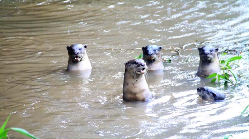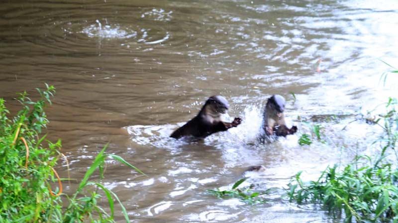 ที่บริเวณใต้เชิงสะพานคลองบางริ้น ริมถนนเพชรเกษม ม.2 ต.บางริ้น อ.เมืองระนอง จ.ระนอง ใกล้สถานีสูบน้ำดิบทำน้ำประปาของ การประปาส่วนภูมิภาคจังหวัดระนอง พบ นากน้ำจืด ออกมาปรากฏตัวในขณะฝนตก จับปลาในคลองกินกัน จำนวน 2 ฝูงรวมจำนวนประชากรนากน้ำจืด ร่วม 20 ตัว
