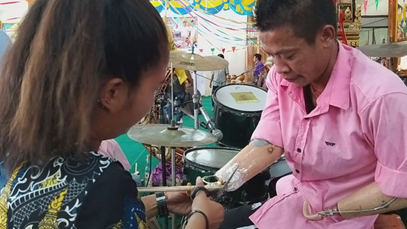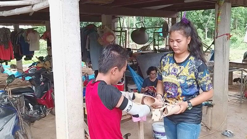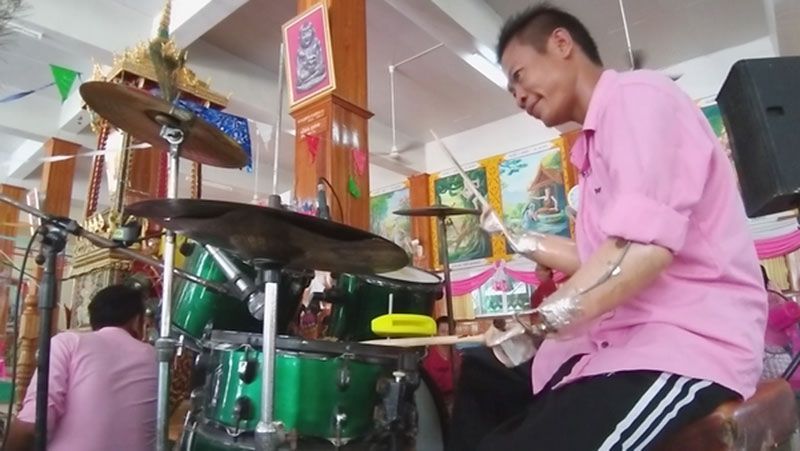 “ผมตีกลองมาตั้งแต่เด็ก รักในอาชีพดนตรีมาก พอได้แขน-ขาเทียมมาใส่ ก็เริ่มฝึกใช้ตีกลองทันที โดยเอาเทปใสมาพันไม้กลองยึดติดกับแขนเทียม ฝึกครั้งเดียวก็คล่อง แต่ตอนนี้ดันมาเจอช่วงโควิดอีก ทำให้วงปี่พาทย์ถูกยกเลิกงาน ขาดรายได้ จึงต้องรับจ้างทำงานก่อสร้าง อ๊อกเชื่อมเหล็ก หาเลี้ยงครอบครัวด้วย”