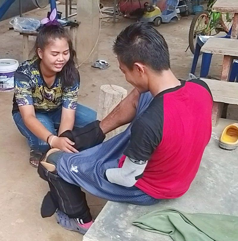 นายสุรชัย ชาญสมาธิ หรือหรีด อายุ 30 ปี หนุ่มหัวใจนักสู้ บอกว่า เมื่อปี 2560 ตนไปทำงานช่วยพ่อเชื่อมเหล็กโครงหลังคาบ้าน แล้วพลาดไปโดนสายไฟแรงสูง ถูกไฟฟ้าช็อตจนต้องตัดแขน-ขาทิ้ง ใช้เวลาพักฟื้นปรับตัวนาน 2 เดือน จึงเริ่มชีวิตใหม่ได้อีกครั้ง โดยมีพ่อแม่ ภรรยาและลูกสาว 10 ขวบ กับลูกชาย 4 ขวบ คอยเป็นกำลังใจให้ก้าวเดินต่อ