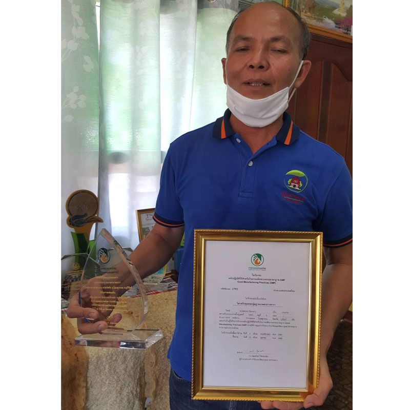 และสิ่งที่สร้างความภาคภูมิใจให้กับกลุ่มฯ คือ รางวัลและประกาศเกียรติคุณจากหน่วยงานต่างๆ ที่การันตีถึงความมุ่งมั่นตั้งใจในการแปรรูปยางพาราให้มีคุณภาพมาตรฐาน โดยเฉพาะ เมื่อปี 2561 ที่ผ่านมา กลุ่มเกษตรฐานเกษตรยางพาราแห่งนี้ ได้รับการรับรองมาตรฐาน การผลิตยางเครปบางสีน้ำตาล ชั้นพิเศษ และยางแผ่นรมควัน ชั้นพิเศษ ได้มาตรฐาน GMP เป็นแห่งแรกของประเทศไทย และแห่งเดียวในโลก ทำให้มีออเดอร์ส่งออกจีนถึง 20,000 ตัน โดยปัจจัยที่ทำให้ยางมีคุณภาพเกิดจากความใส่ใจในขั้นตอนการอบยาง เพราะใช้อุณหภูมิต่ำ ความร้อนไม่เกิน 70 องศาเซลเซียส หากเทียบกับโรงงานทั่วไปอาจจะใช้อุณหภูมิสูงถึง 140 องศา ก็จะทำให้ความยืดหยุ่นของยางเสื่อมคุณภาพเร็ว