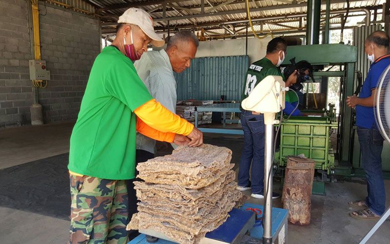 นายธนากร จีนกลาง ประธานกรรมการกลุ่มเกษตรกร ฐานเกษตรยางพารา อ.โนนสุวรรณ จ.บุรีรัมย์ กล่าวว่า ที่ผ่านมาเกษตรกรจะนิยมขายน้ำยางดิบ และยางก้อนถ้วย เพราะไม่อยากยุ่งยาก แม้จะได้ราคาต่ำ แต่พอทาง กยท.เข้ามาสนับสนุนส่งเสริมให้เกษตรกรหันมาแปรรูปยางพารา เพื่อเป็นการสร้างมูลค่าเพิ่ม จนเป็นที่มาของการรวมกลุ่มแปรรูปยางพาราดังกล่าว