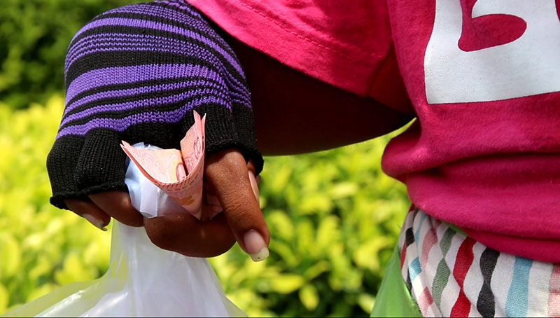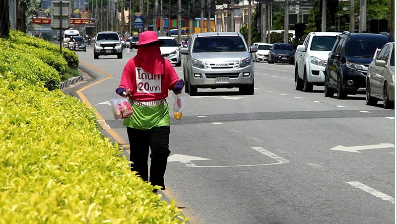 26 กรกฎาคม 2563 ภาพชายหนุ่มพิการ ด้วยแขน 2 ข้างที่สั้นกุด หิ้วถุงโดนัทเร่ขายบริเวณสี่แยกไฟแดงบ้านโรงไม้ขีด ม.2 ต.นาเกลือ อ.บางละมุง จ.ชลบุรี ช่วงรถรอสัญญาณไฟจราจรเปลี่ยนสี เป็นภาพที่พบเห็นชินตาของผู้ที่สัญจรผ่านไปมา และช่วยอุดหนุนอยู่บ่อยครั้งด้วยความสงสารเห็นใจ