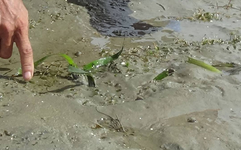 นายสุเวทย์ เกตุแก้ว และนางแช่ม เพ็ชรจันทร์ ตัวแทนชมรมประมงพื้นบ้านจังหวัดตรัง กล่าวว่า นับจากบริเวณเกาะนก มาถึงบริเวณแหลมจุโหย ชาวประมงพื้นบ้านทั้งจากเกาะมุกด์และเกาะลิบง เคยนำสภาพปัญหาดังกล่าวมาพูดคุยกันในการประชุมชมรมประมงพื้นบ้านจังหวัดตรังมาตั้งแต่ปี 2561 ว่าถ้ามีการขุดลอกปากแม่น้ำตรัง ถ้ามีการขนย้ายตะกอนดินไปทิ้ง เชื่อว่าจะกระทบหญ้าทะเลอย่างแน่นอน แต่ไม่มีความคืบหน้าจากหน่วยงานที่เกี่ยวข้อง และจากนั้นเมื่อต้นปี 2562 ก็เริ่มพบตะกอนดินทับถมหญ้าทะเลบริเวณรอบนอกประมาณ 200 ไร่ แต่พอปลายปี 2562 พบว่าหญ้าทะเลเสียหายเป็นบริเวณกว้างมากยิ่งขึ้นจนถึงบริเวณนี้ จึงนำเข้าหารือในที่ประชุมชมรมประมงพื้นบ้านจังหวัดตรังอีกครั้ง