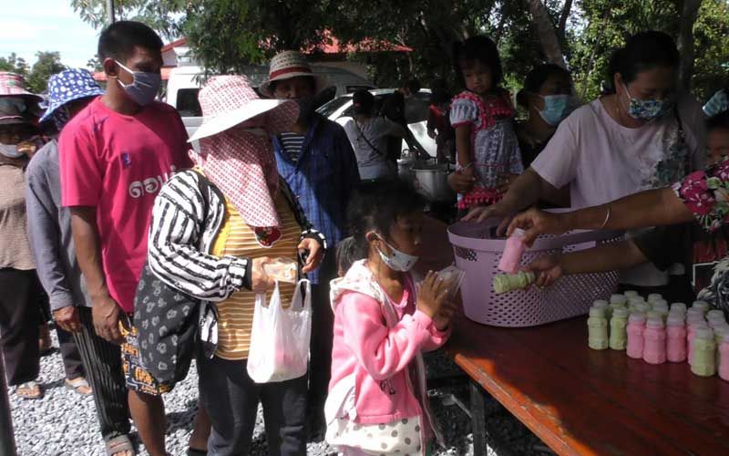 โดยผู้ที่มาออกโรงทานแจกอาหารหลายรายบอกว่า เดินทางมาจากกรุงเทพมหานคร ด้วยความศรัทธาเพราะเคยมากราบขอพรหลวงพ่อกวยแล้วประสบความสำเร็จ สมหวังตามที่ขอ เลยนำอาหาร ขนม เครื่องดื่มต่างๆ มาแจกโรงทานเพื่อร่วมทำบุญและแก้บนหลงพ่อกวยด้วย ซึ่งคาดว่าวันนี้ตลอดทั้งวันจำมีผู้ที่เดินทางมาไหว้พระทำบุญที่นี่ไม่ต่ำกว่า 30,000 คน