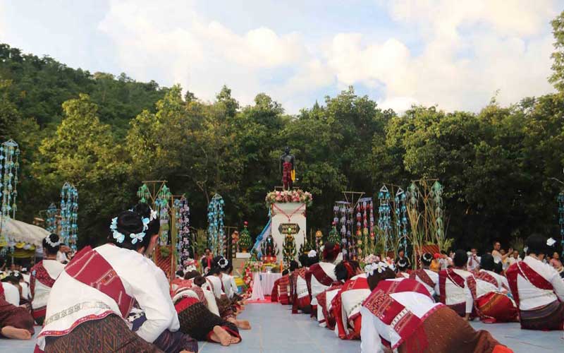 ตลอดจนนักท่องเที่ยวและประชาชนทุกคนที่มาร่วมในงาน จึงได้จัดพิธีสักการะพระประชาชนบาล เจ้าเมืองคนแรกของเมืองสหัสขันธ์ โดยขบวนนางรำจากกลุ่มสตรีแม่บ้าน เยาวชน ใน 85หมู่บ้าน จาก 8 ตำบล ใน อ.สหัสขันธ์ กว่า 1,300 คน แต่งกายด้วยเสื้อผ้าพื้นเมืองและแพรวา ตั้งริ้วขบวนรำบวงสรวงอย่างสวยงาม ซึ่งบทเพลงที่ใช้ในการรำสักการะครั้งนี้ได้ประพันธ์และเรียบเรียงเพลง โดยชาว อ.สหัสขันธ์ เพื่อแสดงกตเวทิตาต่อบรรพบุรุษ และขอให้การจัดงานประเพณีปีนี้สำเร็จผลลุล่วงด้วยดี