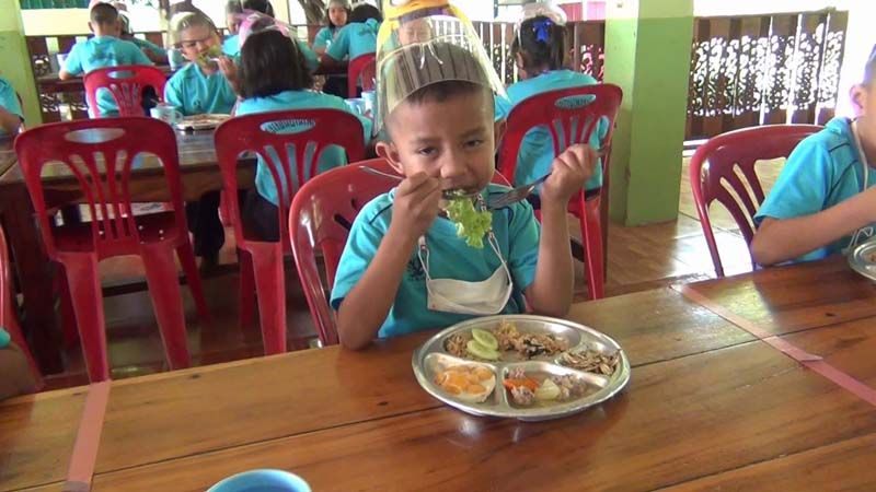 และในส่วนแนวคิดผักพื้นบ้าน และอาหารนานชาติ ๆ จะเป็นอาหารฝรั่ง ที่เป็นรูปแบบแฮมเบอร์เกอร์ ชูชิ เกาหลี ข้าวยำ อาหารต่าง ๆ นั้น ซึ่งเกิดจากการที่เด็กเข้าเคยดูทีวี แล้วมาบอกครู เข้ายากกินอาหารประเภทนี้ ซึ่งทางครูก็ได้เป็นสะพานบุญ นำวัตถุดิบต่าง ๆ ที่มีผู้สนับสนุนมามอบให้ ที่ส่งมาให้ และงบประมาณทั้งหลายมาร่วมกัน แล้วก็ไปซื้อวัตถุดิบในเมืองมาให้แม่ครัวทำ โดยการทำอาหารต่าง ๆ จะศึกษาทางคลิปวีดีโอ โดยอาหารแต่ละวันนั้นเด็กจะตื่นเต้นกันว่าจะได้ทานอาหารที่เอร็ดอร่อยเที่ยงวันนี้อะไร ซึ่งสร้างแรงจูงใจให้เด็กนักเรียนมาโรงเรียนทุกวัน โดยเด็กจะไม่ขาดโรงเรียนกัน ที่สำคัญเด็กจะได้รับการพัฒนา ร่างกาย อารมณ์ สังคม สติปัญญา สมกับไวของเข้า และทางโรงเรียนนั้นให้ผู้ปกครองรับทราบ โดยผู้ปกครองก็เป็นส่วนหนึ่งที่สำคัญ ที่ส่งวัตถุดิบมา เช่นบ้านใคร่ปลูกแตกกวา ข้าวโพด ถั่วผักยาว และผักอื่น ๆ ผู้ปกครองจะนำมามอบให้โรงเรียน ครูมีหน้าที่เอาวัตถุดิบนั้นมาทำอาหารให้เด็กนักเรียนทาน ให้ผู้ปกครองเข้าเห็นว่าฝากวัตถุดิบมากับครูให้ถึงตัวเด็กจริง ๆ คือเด็กได้ทาน และเด็กก็มีความสุข ซึ่งคนยากมีส่วนร่วม ก็ขยายวงกว้างมากขึ้น จึงได้รับการสนับสนุนอย่างต่อเนื่องมาตลอด