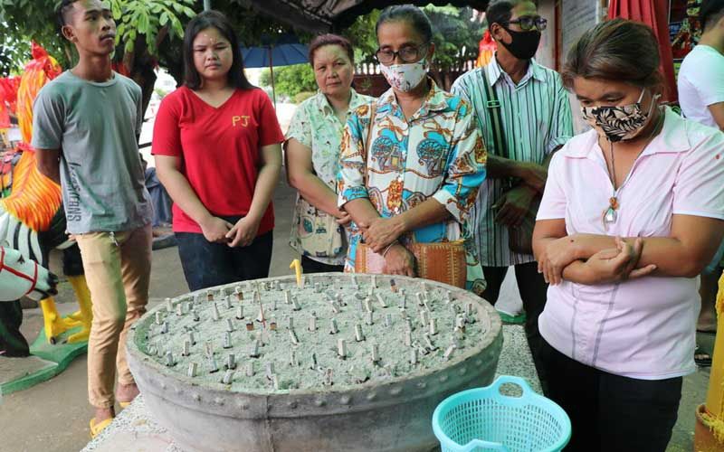 วันที่ 14 ต.ค.63 ที่บริเวณวัดสนามชัย อำเภอเมือง จังหวัดอ่างทอง ชาวบ้านและนักท่องเที่ยวเดินทางมากราบไหว้และขอโชคลาภจากรูปหล่อจำลอง "ไอ้ไข่ เด็กวัดเจดีย์" กันต่อเนื่อง พร้อมกับมีการนำสิ่งของมาแก้บ่นไอ้ไข่ และจุดประทัดแก้บน