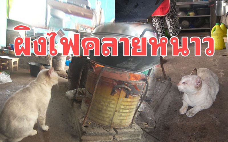 10 พฤศจิกายน 2563 ที่บ้านพักในเขตเทศบาลเมืองอำนาจเจริญ พบแมวสีขาว พันธุ์ไทย นั่งผิงไฟคลายหนาวหน้าเตาถ่าน ซึ่งเปลวไฟกำลังลุกโซน ซึ่งที่บ้านหลังดังกล่าว จะพบเห็นแม่แมว นั่งผิงไฟคลายหนาวเป็นประจำทุกปี