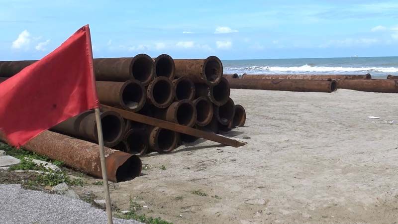 ขณะเดียวกันบริเวณชายหาดชลาทัศน์ มีท่อดูดทรายขนาดใหญ่วางเกลื่อนชายหาดชลาทัศน์ ระยะทางยาวกว่า 1 กิโลเมตร ที่เสียพื้นที่ตรงนี้ไปอย่างน่าเสียดาย นักท่องเที่ยวไม่สามารถลงมาที่ชายหาดเข้ามานั่งพักผ่อนริมชายหาดชลาทัศน์บริเวณนี้ได้ เพราะท่อดูดทรายขนาดใหญ่และเป็นสนิม เนื่องจากช่วงนี้ทางผู้รับเหมาหยุดดูดทราย เพราะคลื่นลมแรง ทำอะไรไม่ได้ ท่อและอุปกรณ์ต่างๆที่วางเกลื่อนชายหาดก็เคลื่อนย้ายไม่ได้ เนื่องจากต้องใช้เวลาและเครื่องจักรทำให้ในช่วงนี้บริเวณชายหาดชลาทัศน์มีประติมากรรมชายหาดให้ชมเกลื่อนชายหาดยาวไปจนถึงปีหน้า ต้องพ้นฤดูมรสุมตะวันออกเฉียงเหนือไปก่อนจึงจะเริ่มลงมือทำอีกครั้งเหมือนปีที่ผ่านมา